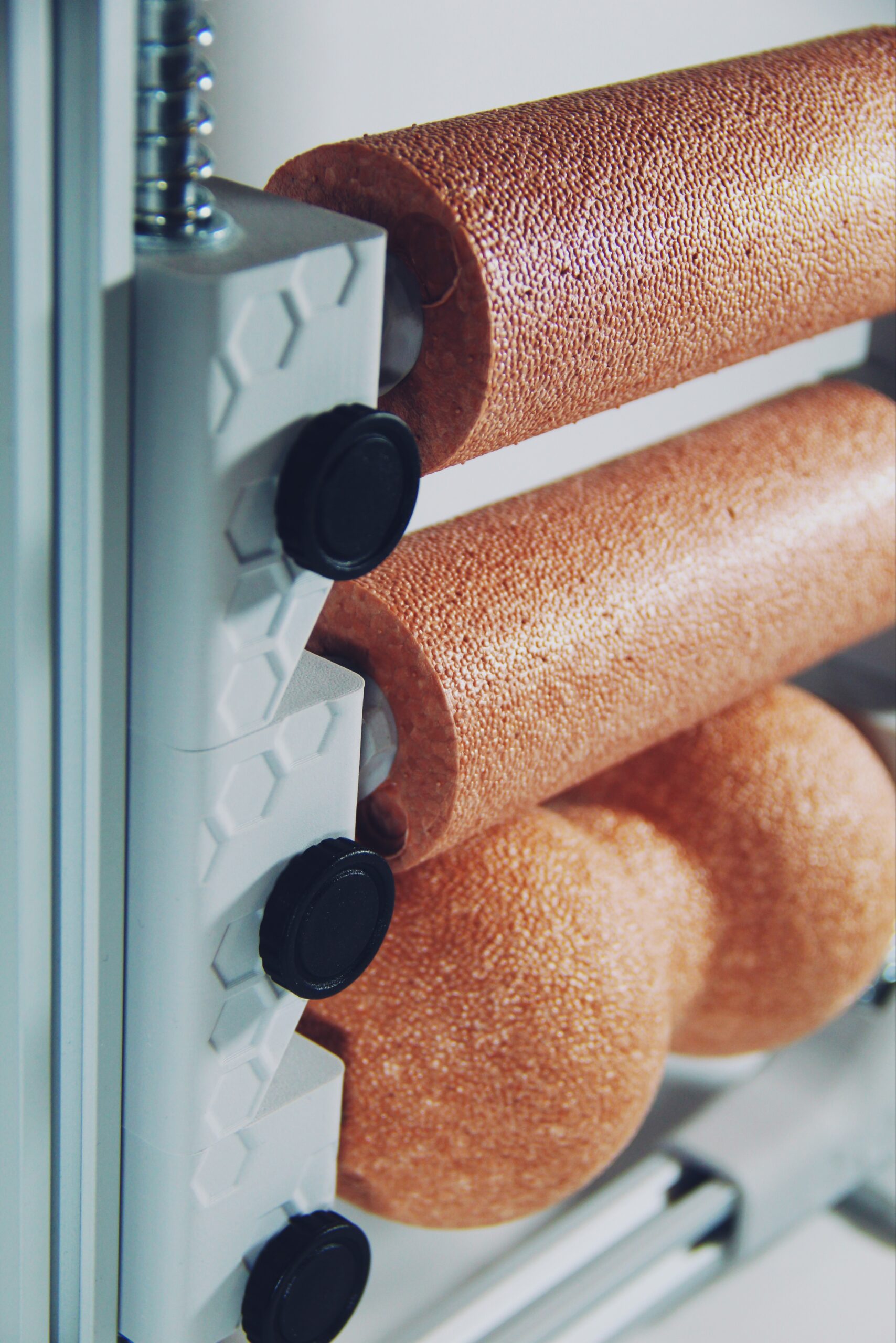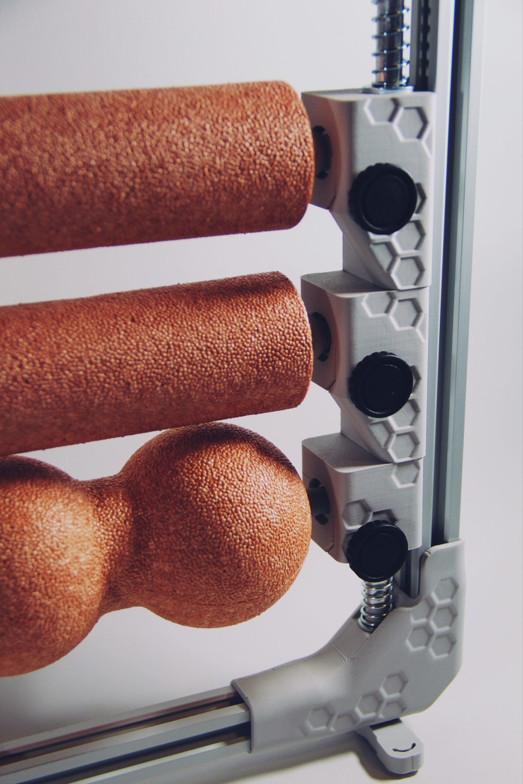 Masażer Rolls&Force ma 3 miejsca montażowe, w których możesz wybrać do zamontowania 4 komponenty zawierające łożyskowaną oś: