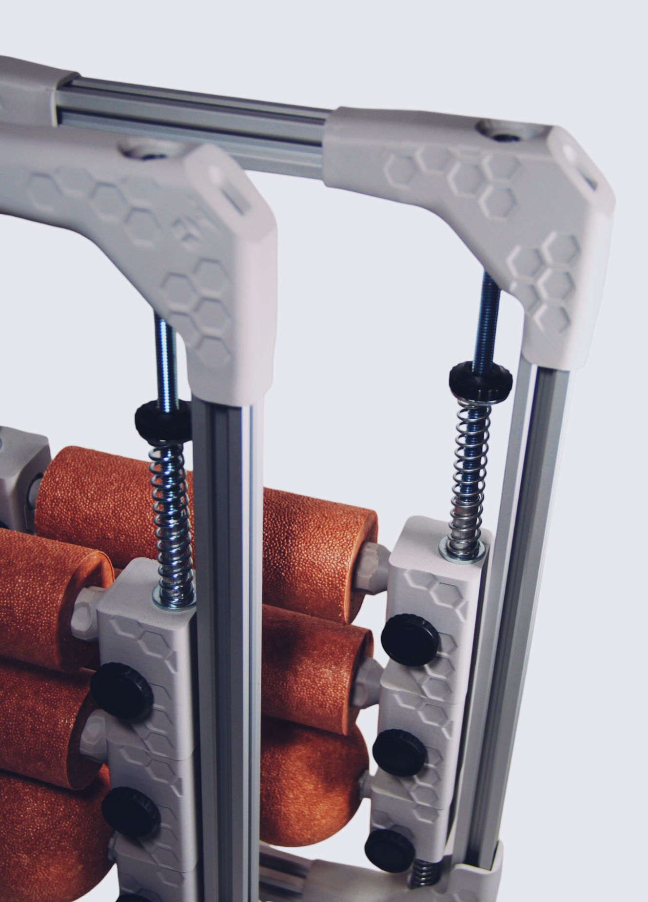 The Rolls&Force massager has 3 mounting positions, where you can choose to mount 4 components containing a bearing axle: