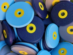 Wytrzymałe plakietki z oznaczeniem „topu” drogi/boulderu.