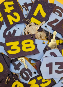 Wytrzymałe breloczki z oznaczeniem numeru szafki w szatni. Wersja damska i męska.